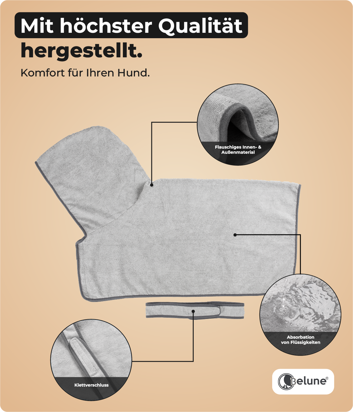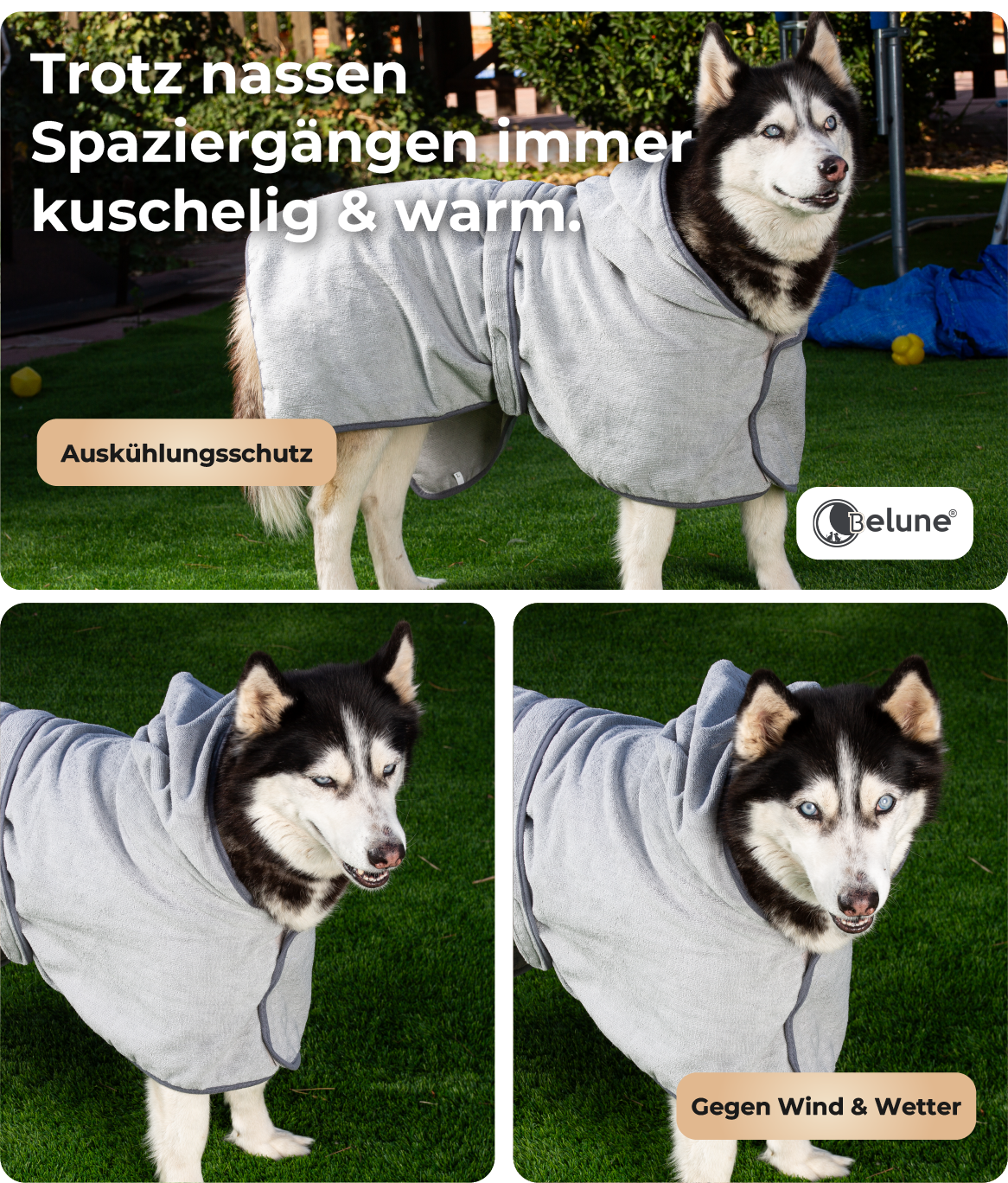 Der Hunde-Bademantel von Belune® ist perfekt, um deinen Vierbeiner nach nassen Spaziergängen schnell und effektiv zu trocknen. Er schützt vor dem Auskühlen und hält deinen Hund schön warm.
